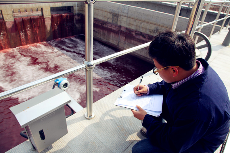 江濱水處理公司運行部工作人員抄進水流量