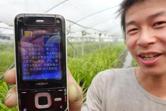 圖為農民朋友正在查看通過“農民信箱”發送過來的節水知識短信