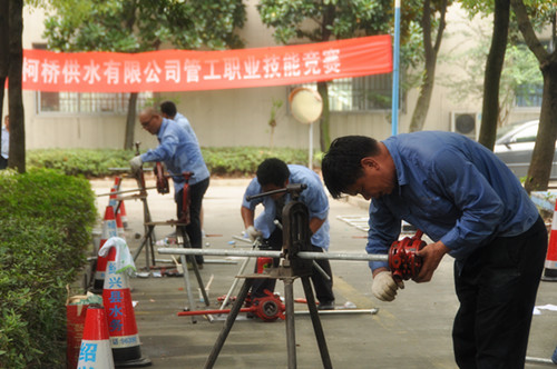 比賽分理論考試和實踐操作兩部分。理論考試涉及制圖、水力學、管材、管網管理、施工、安全等知識,實踐操作包括施工圖紙識讀、施工方案的編制、管道工程量的計算和管道的安裝等。此次職業技能競賽,全面檢驗了職工的崗位技能綜合素質,促進了供水搶修技能的提升。