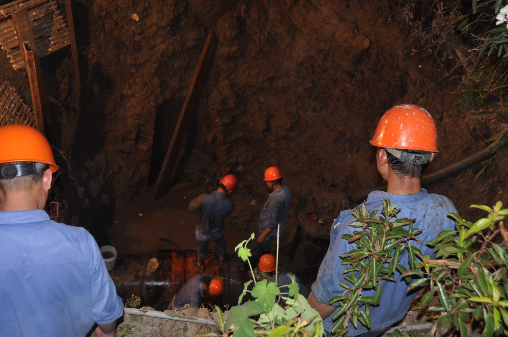 當晚,雙臺風余威尚未盡興,尤其是后半夜受其余威影響陡然而至的暴雨,扎扎實實地落在搶修人員的臉上和身上,早已分不清是雨水還是汗水。暴雨過后的夜晚,頻頻騷擾的蚊蟲,更是將搶修人員裸露在外的脖子和手臂上留下密密麻麻的痕跡。被應急燈照得燈火通明的搶修現(xiàn)場,大伙兒雖然身軀疲憊,卻始終斗志高昂,雖然各個渾身濕透沾滿污泥,卻不曾有過半句怨言。為盡快恢復正常供水,這些搶修“衛(wèi)士”與時間賽跑,分秒必爭,堅持、再堅持……